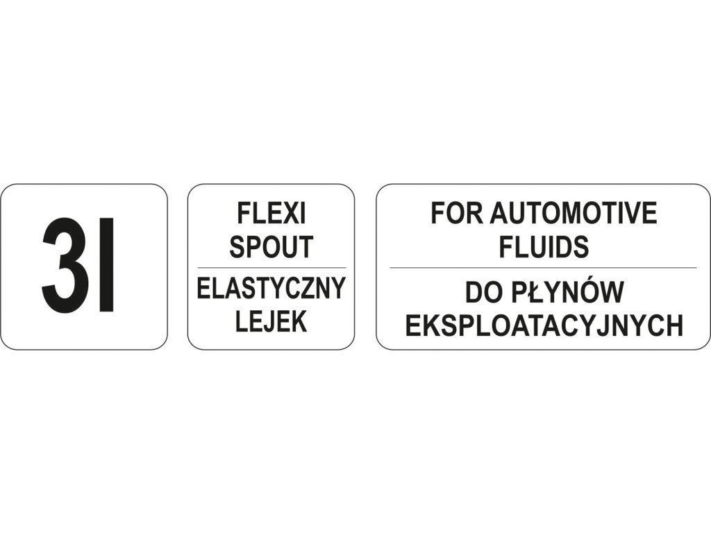 Zhotovení z odolného PE materiálu odolného vůči technickým kapalinám, opatřená šroubovacím víkem a ohebnou nálevkou.