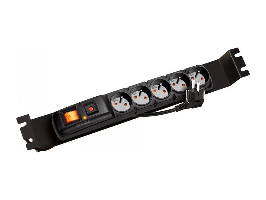 Napajeci panel ACAR F5 FA 3m 5 pozic BK včetně držáků do 19" lišt 1U, ACAR-F5-FA