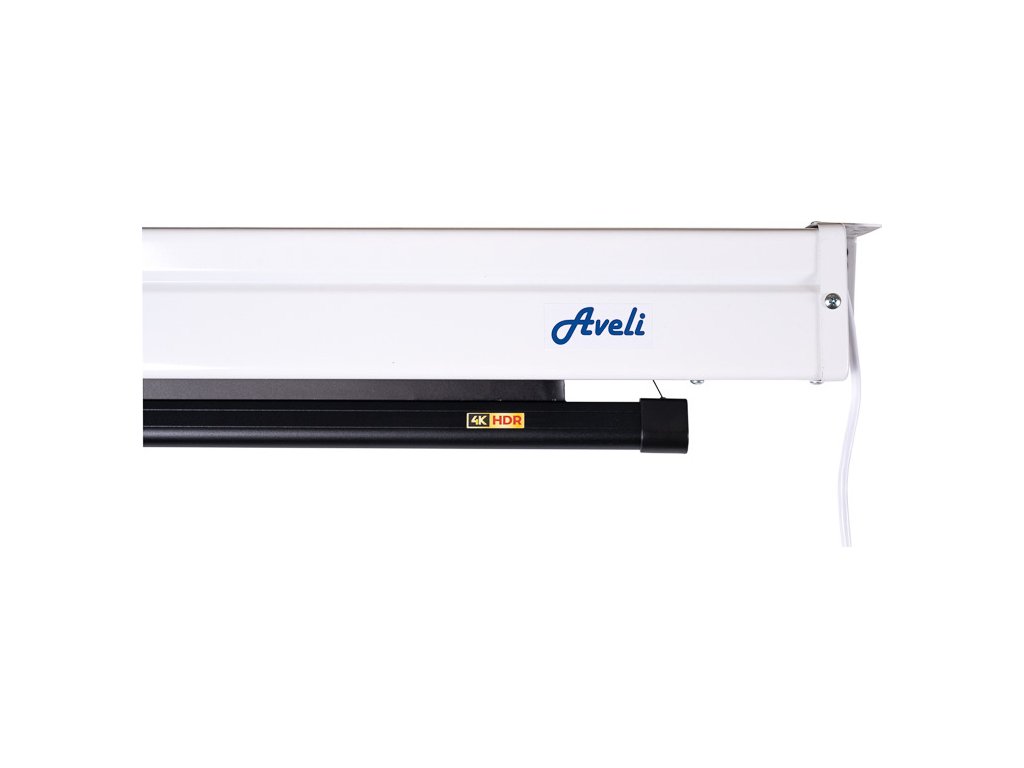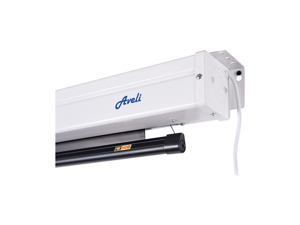 Nástěnné elektrické projekční plátno AVELI PREMIUM s dálkovým ovládáním je možné instalovat na zeď nebo strop. Vhodné pro projektory se světelným výkonem 4000 ANSI a vyšší. Využití business nebo Home Cinema.