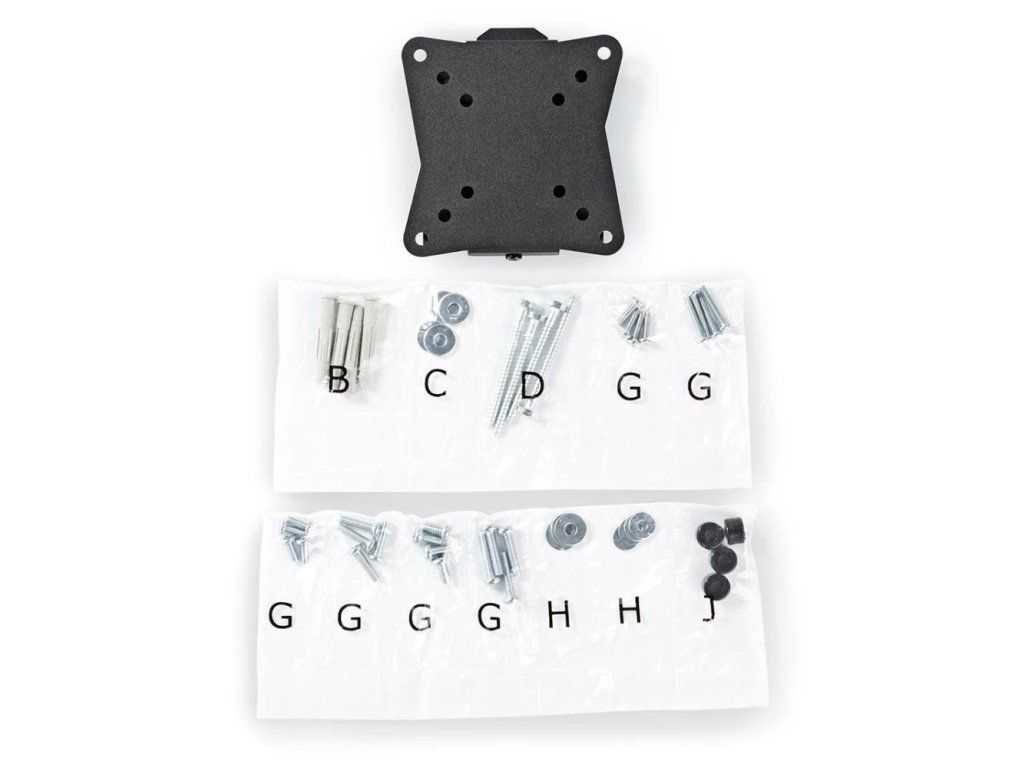 Držák je vyroben z kvalitní oceli v černém provedení a podporuje standardní VESA rozhraní pro snadnou instalaci. V balení naleznete kompletní montážní materiál včetně podrobného návodu pro rychlou a bezpečnou montáž.
