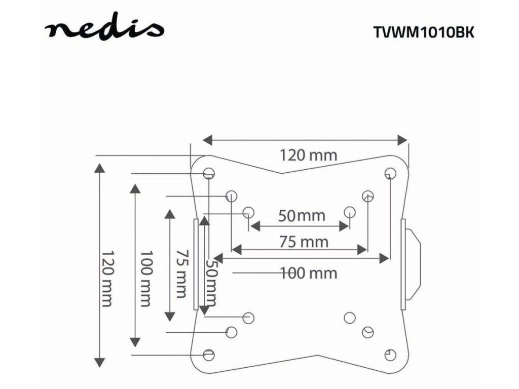 Držák podporuje tři nejběžnější VESA standardy: 50 × 50, 75 × 75 a 100 × 100 mm, což zajišťuje kompatibilitu s většinou televizorů v dané velikostní kategorii.
