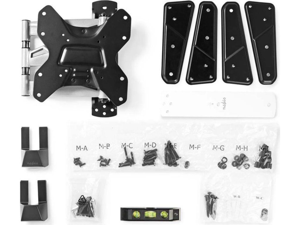 Kompatibilita s širokým spektrem VESA standardů od 75 × 75 mm až po 400 × 400 mm zajišťuje použitelnost s většinou televizorů na trhu. Integrovaný systém vedení kabelů udržuje kabely v pořádku a libela v balení garantuje rovné namontování.