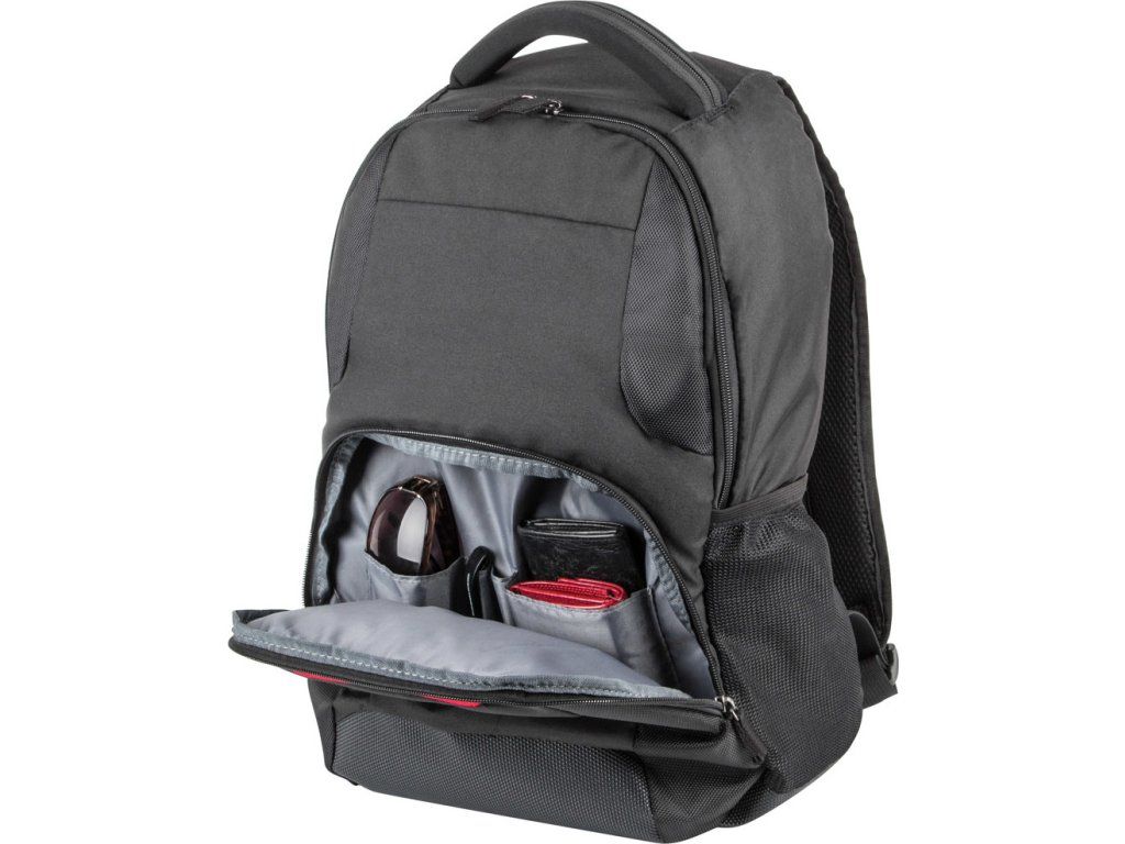 Batoh má jednu velkou přihrádku včetně polstrované kapsy na notebook se zapínáním na suchý zip a další menší zasouvací kapsu na tablet. Do úložného prostoru se vejdou i větší předměty, jako jsou knihy, dokumenty a příslušenství. Menší příslušenství, jako jsou pera, chytrý telefon, peněženka, lze uložit do přední rychle přístupné kapsy ve vyhrazeném organizéru pro pracovní stanice.
