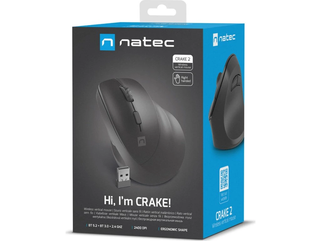 Natec Crake 2 je vertikální myš navržená s ohledem na ergonomii. Její tvar umožňuje zdravou polohu ruky a minimalizuje riziko bolesti zápěstí a únavy při dlouhém používání počítače. Další praktickou funkcí je možnost spárovat myš se 3 různými zařízeními a plynule mezi nimi při práci přepínat.