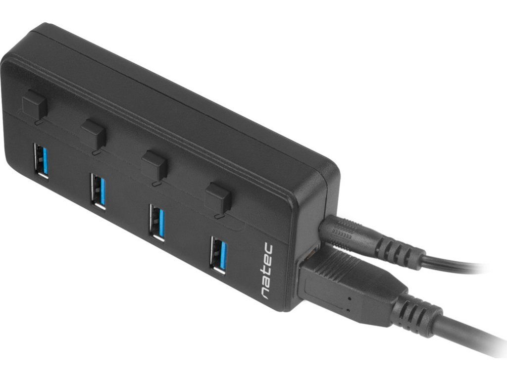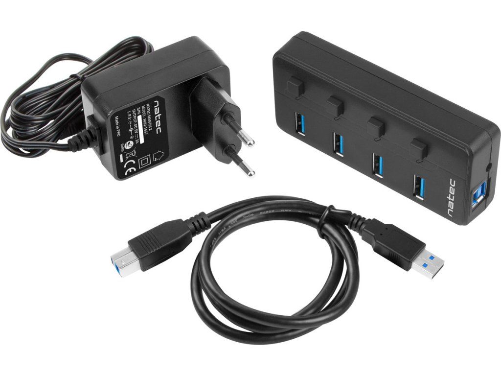 Natec Mantis 2 aktivní rozbočovač s funkcí nabíjení 4x USB 3.0 HUB, vypínač, napájecí adaptér