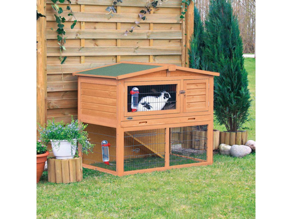 NATURA mega králíkárna s výběhem, 124 x 102 x 78 cm, hnědá