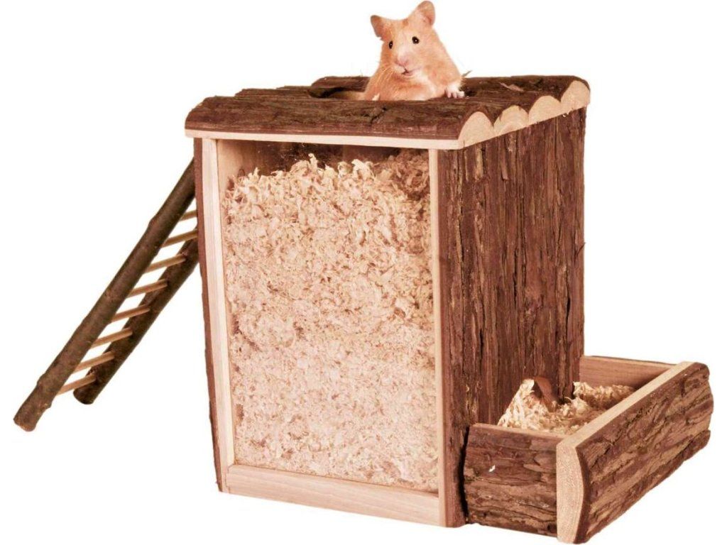 - vyrobeno z jehličnatého dřeva bez pryskyřičných kanálků, protože pryskyřice může být pro některá zvířata jedovatá