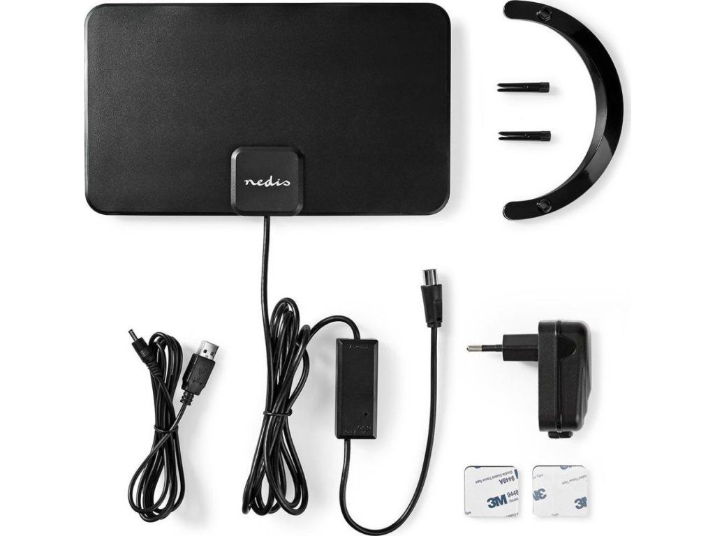 Nedis ANIR2501BK700Pokojová anténa pro příjem DVB-T/T2 a FM/DAB+ signálů je vybavena integrovaným zesilovačem se ziskem až 26 dB a LTE700 filtrem. Připojuje se pomocí 2,1 m dlouhého kabelu zakončeného anténní zástrčkou IEC (koax). Napájení lze realizovat snadno z elektrické sítě prostřednictvím přiloženého napájecího adaptéru.