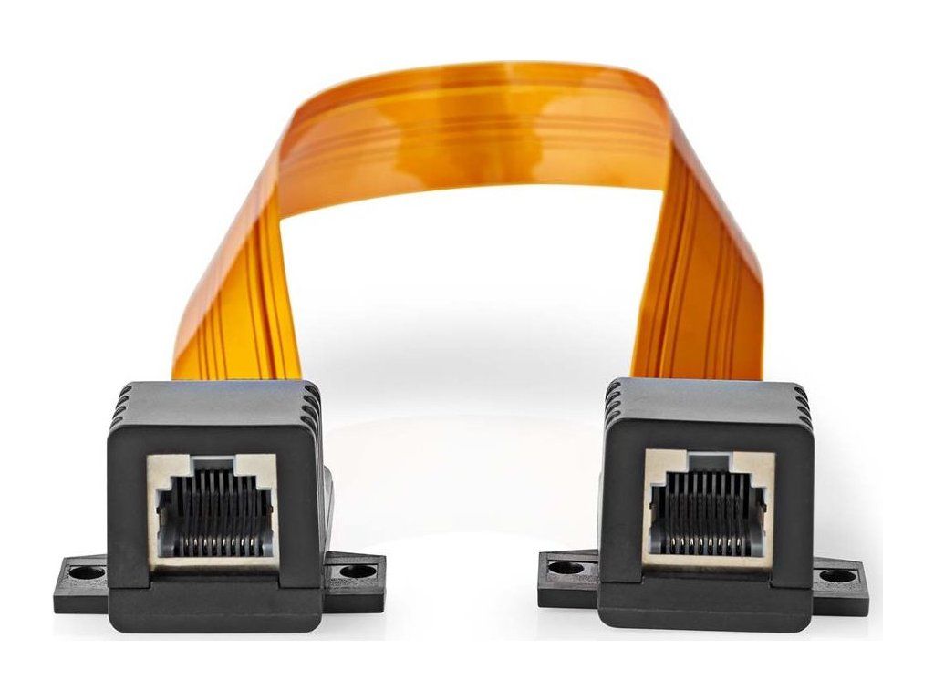 Nedis CCGB85901BK03Plochý spojovací kabel se dvěma zásuvkami RJ-45, nylonovým pláštěm a tloušťkou 0,3 mm. Používá se k vzájemnému propojení dvou kabelů UTP Cat5e v úzkém prostoru, například v oblasti okenního rámu. Materiál kabelu je tak tenký, že lze okno bez problémů zavřít.