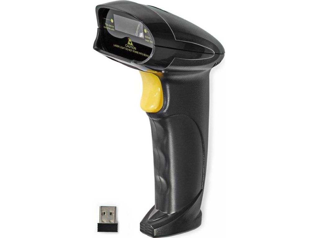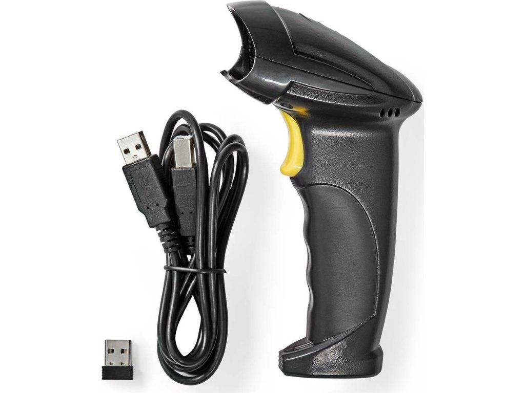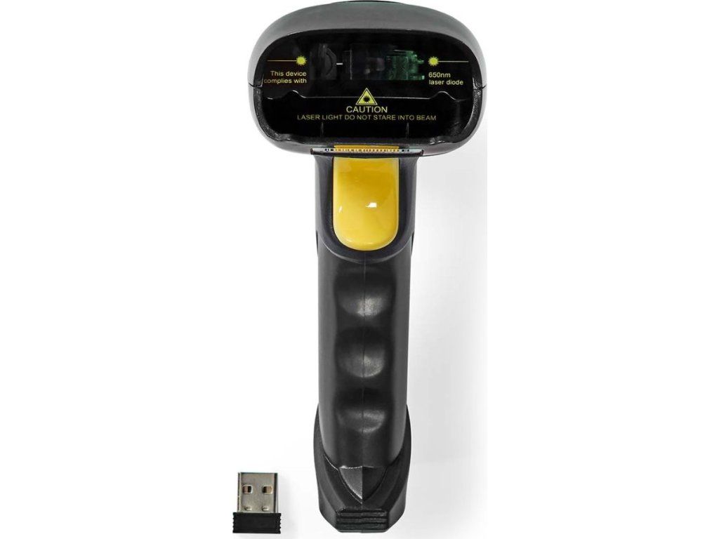 NEDIS čtečka čárových kódů/ laser/ bezdrátová/ 1D lineární/ napájení z baterie/ napájení z USB/ USB dongle/ černá