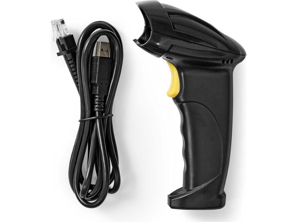 NEDIS čtečka čárových kódů/ laser/ kabelová/ 1D lineární/ napájení z USB/ USB 2.0/ černá