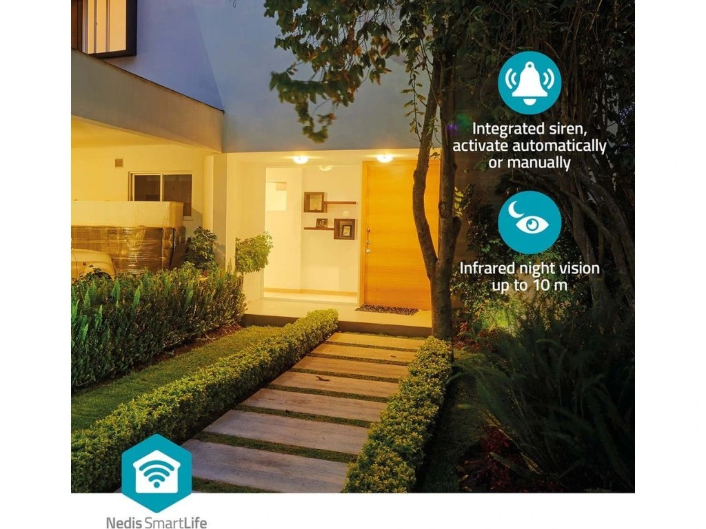 Plnobarevné noční vidění spolu s infračerveným LED přísvitem zajistí skutečný a dobře viditelný obraz i ve tmě. A když se něco začne dít, díky pokročilým funkcím pro detekci zvuku a pohybu máte dokonalý přehled. IP kamera Nedis WIFICBO33WT podporuje také obousměrnou komunikaci, takže s návštěvníkem, kurýrem zásilkové služby nebo pošťákem budete v kontaktu, a přitom v bezpečí. A pokud je to potřeba, aktivujte sirénu nebo LED reflektor pro efektivní odstrašení. Díky podpoře bezdrátového Wi-Fi připojení a aplikaci SmartLife je ovládání snadné a intuitivní.