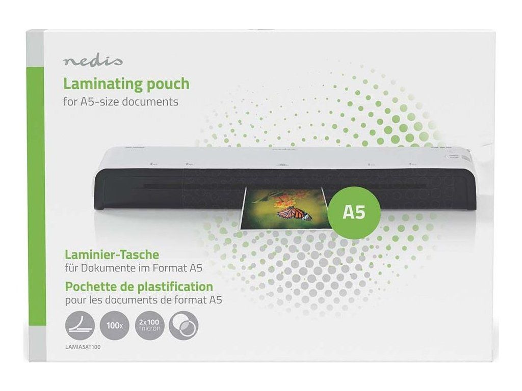 NEDIS laminovací fólie/ formát A5/ 100 mic/ rozměr 216 x 154 mm/ transparentní/ 100 pack