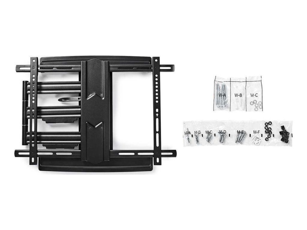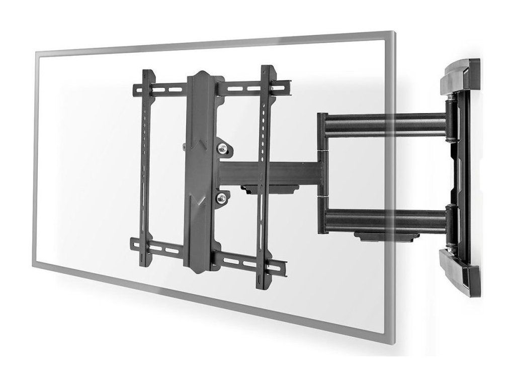Držák využívá dvojramenný design se třemi otočnými body, který poskytuje maximální flexibilitu při nastavování polohy televizoru. Můžete televizor vysunout až 650 mm od stěny, otočit doleva nebo doprava až o 180° a naklonit pro eliminaci odlesků.