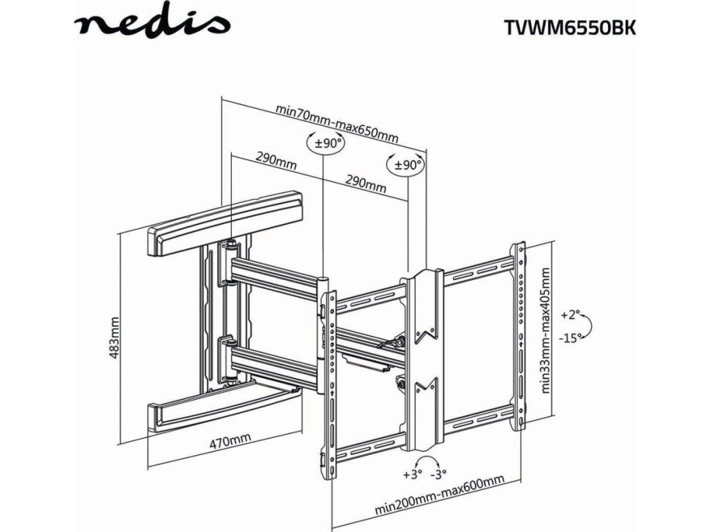 Tento pokročilý držák nabízí kompletní pohyblivost vašeho televizoru díky plně otočnému a sklopnému designu. Umožňuje výsuv od stěny v rozmezí 70 až 650 mm, takže si můžete nastavit ideální vzdálenost pro sledování. Konstrukce z vysoce kvalitní oceli v černém provedení zajišťuje dlouhou životnost a spolehlivost.