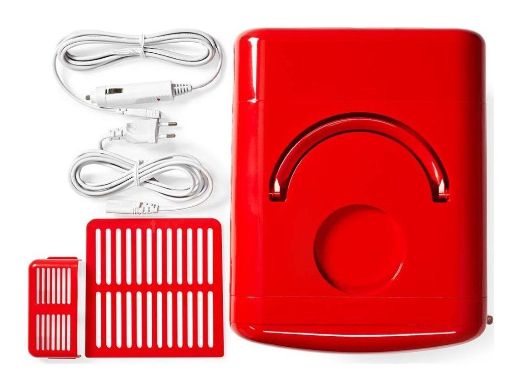 NEDIS přenosná mini lednička/ objem 4 litry/ rozsah chlazení 8 - 18 °C/ AC 100 - 240 V / 12 V/ spotřeba 50 W/ červená