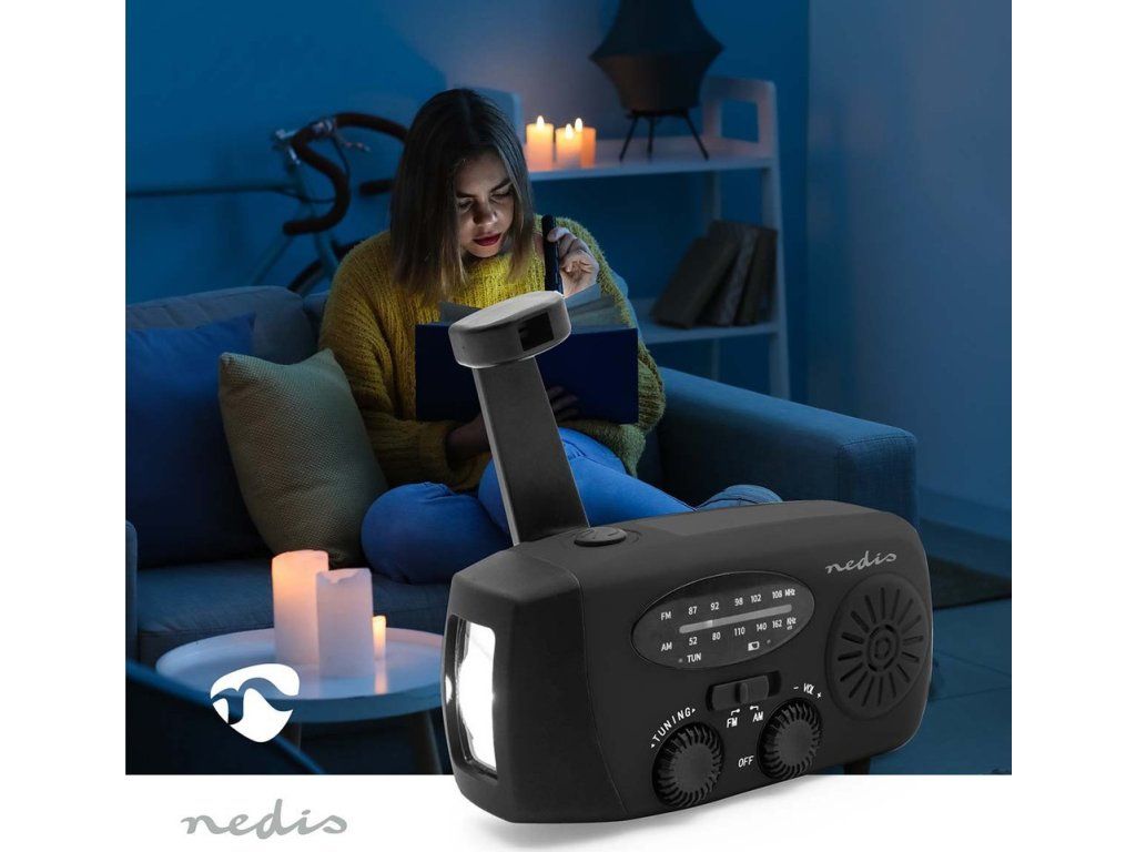 NEDIS přenosné nouzové rádio/ napájení z baterie 2000mAh/ z USB/ AM/ FM/ funkce powerbanky/ USB-C/ černé