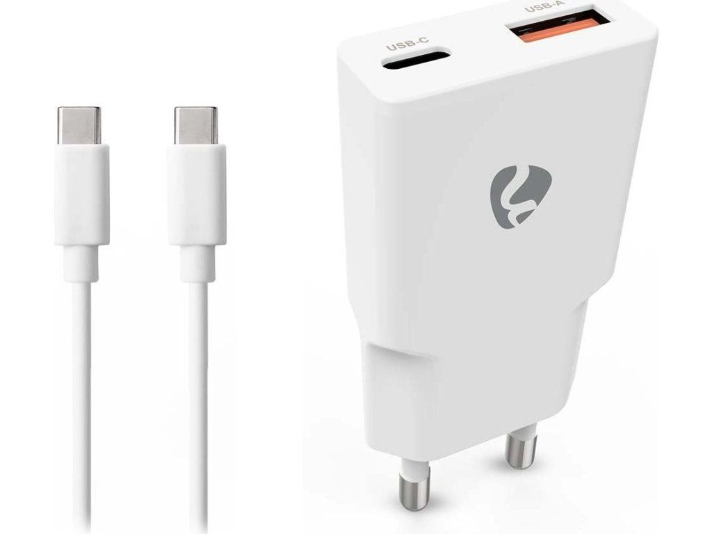 NEDIS síťová nabíječka/ 30 W/ PD 3.0/ rychlé nabíjení/ 1.5 / 2.0 / 2.22 / 3.0 A/ USB-A/ USB-C/ bílá/ kabel 1,5m
