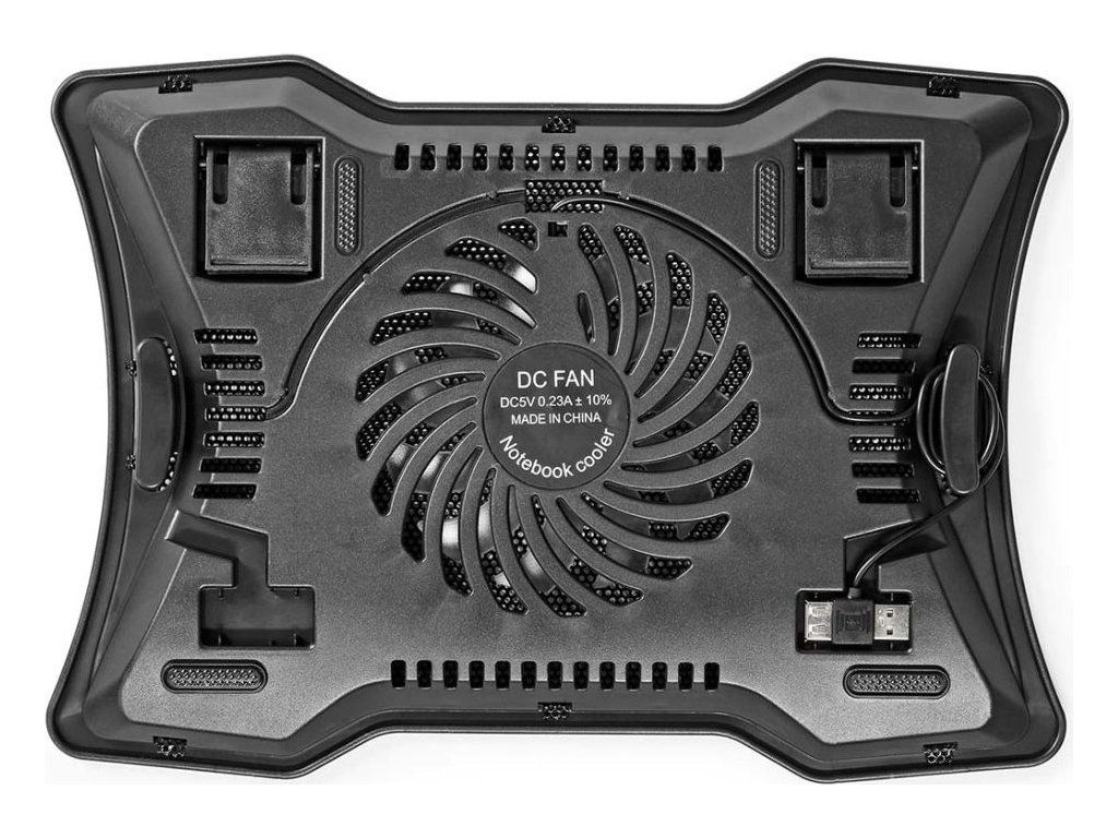 Nedis NBCR101BKChladicí podložka pro notebooky s uhlopříčkou až 17", která se vyznačuje povrchem s kovovou mřížkou a tichým 125 mm ventilátorem, který brání přehřívání zařízení. Podložku lze nastavit do dvou různých pozorovacích úhlů a vytvořit ideální podmínky pro práci. Napájení je řešeno skrze oboustranný USB konektor, díky kterému odpadá potřeba externího napájecího zdroje.