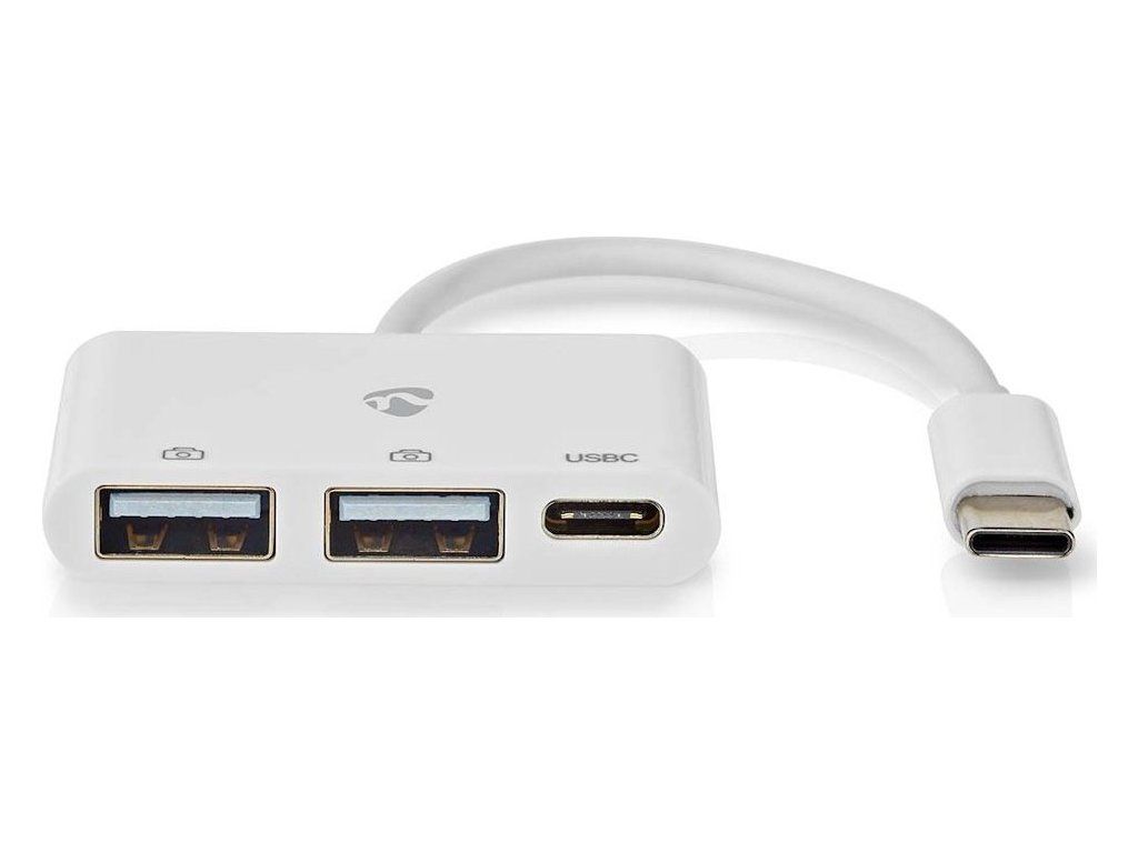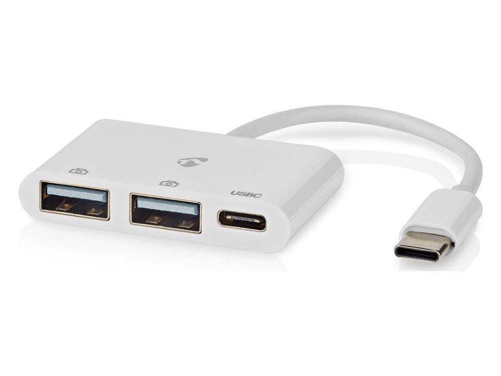 NEDIS USB hub/ 1x zástrčka USB-C/ 1x zásuvka USB-C/ 2x zásuvka USB-A/ 3 porty/napájení z USB/ bílý/ blistr