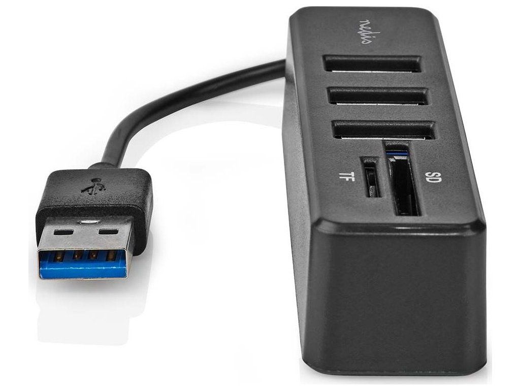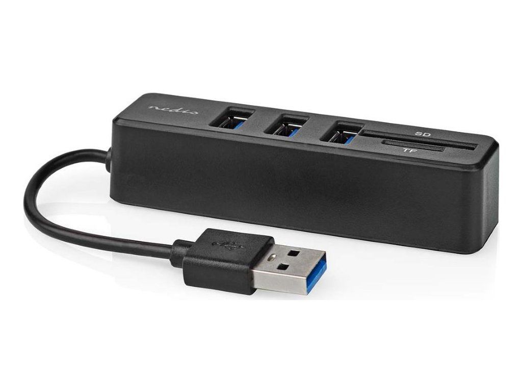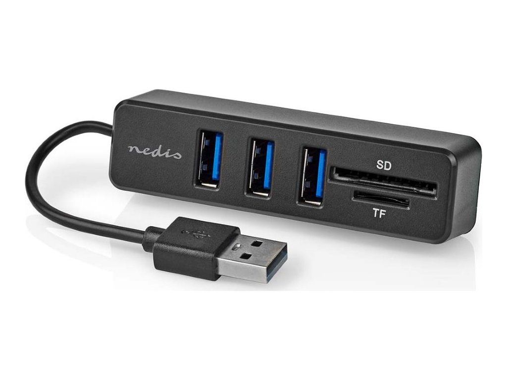 NEDIS USB hub/ zástrčka USB-A/ zásuvka USB-A/ 3 porty/ napájení z USB/ SD & MicroSD/ 3x USB/ černý