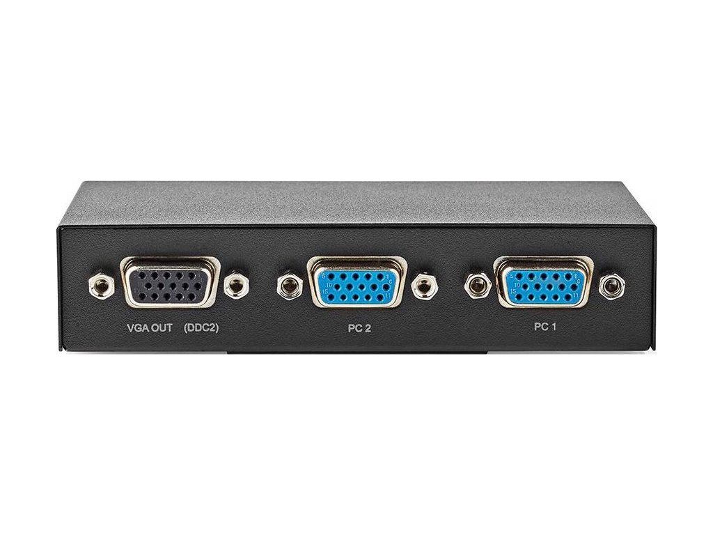 Nedis CSWI5902BKTento 2portový přepínač VGA slouží k přepínání mezi dvěma obrazovkami připojenými k jednomu počítači nebo k přepínání mezi dvěma počítači připojenými k jedné obrazovce.
