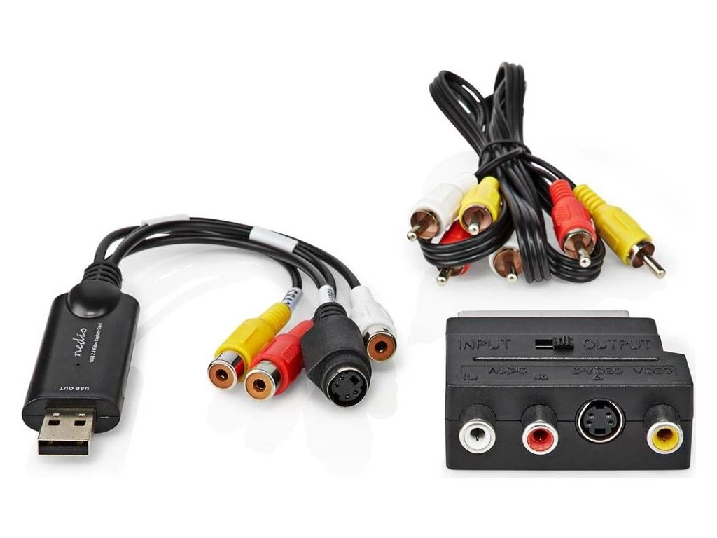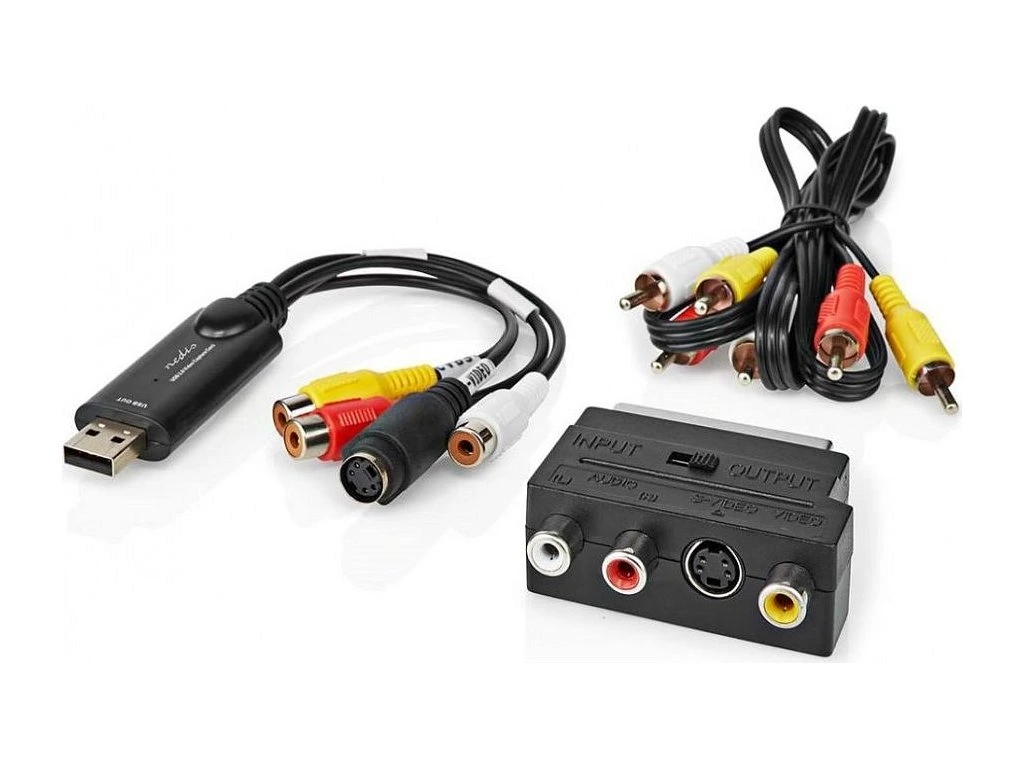 Nedis video převodníkKompletní sada příslušenství pro digitalizaci analogových videozáznamů. Jednoduše připojte videorekordér či videokameru pomocí kabelů v této sadě do USB portu počítače, bez nutnosti instalace jakýchkoli ovladačů. Přenášený obrazový a zvukový signál lze přijímat a zaznamenávat pomocí volně dostupného softwaru OBS Studio.