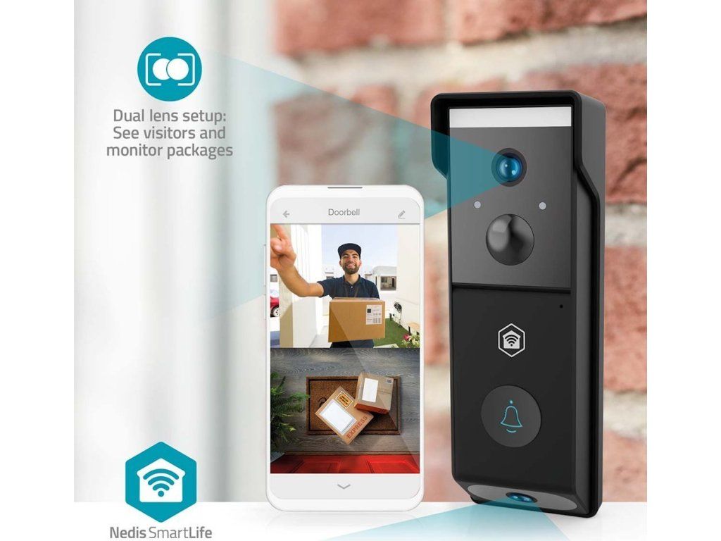 Wi-Fi videotelefon Nedis WIFICDP31BK, se kterým máte jistotu, že balíček bude doručen, pošťák zazvoní a zkrátka nic důležitého vám neunikne. Model je vybaven duálním objektivem, který na jedné straně sleduje návštěvníky, na druhé hlídá balíčky a dění u dveří.