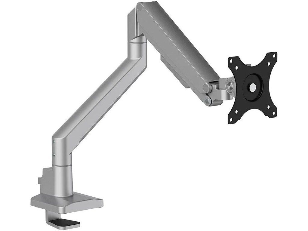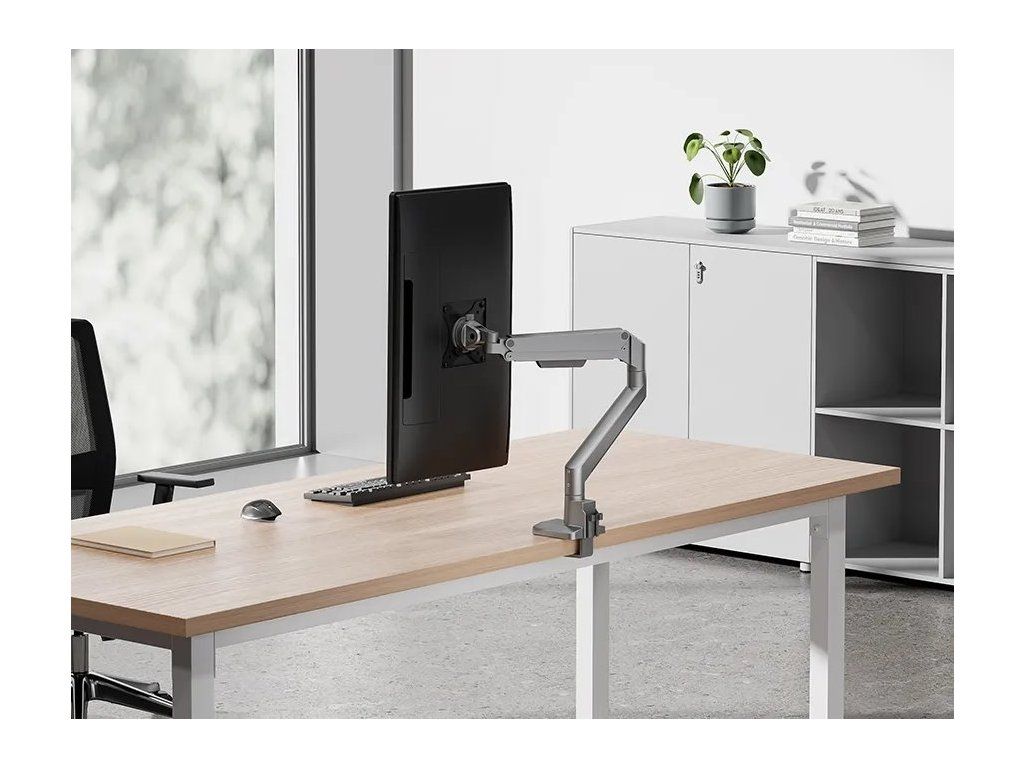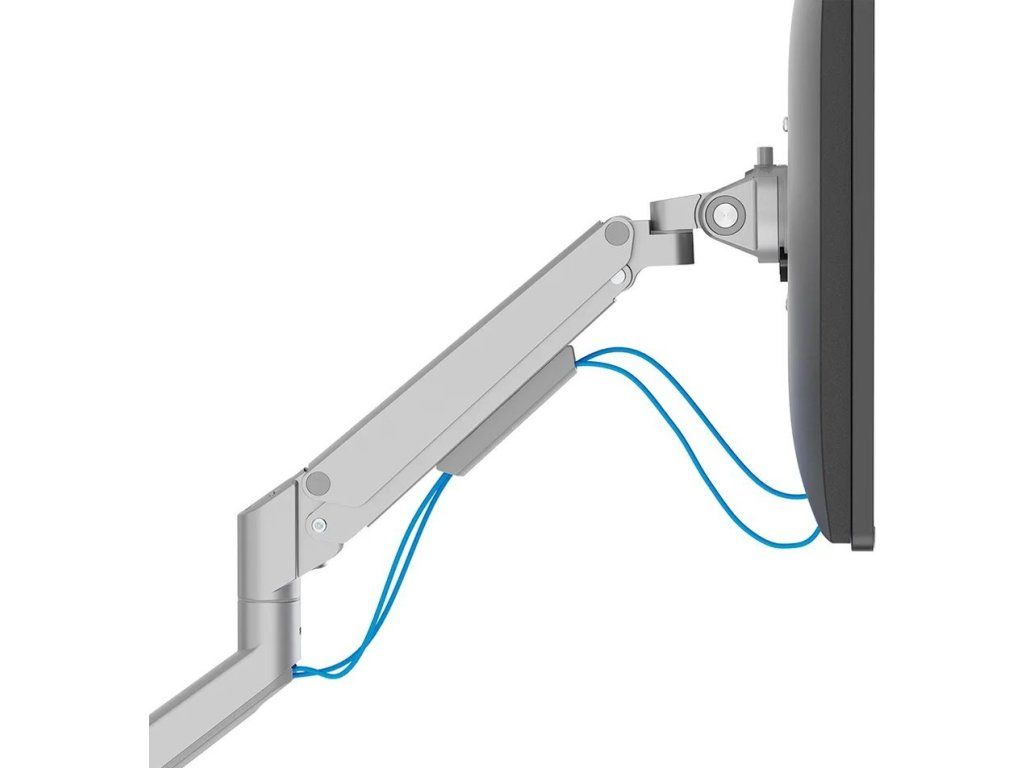 Plně pohyblivý stolní držák pro plochý nebo zakřivený monitor s úhlopříčkou 17" až 35" a maximální hmotností 9 kg (8 kg pro zakřivený monitor). Všestranná technologie naklápění, otáčení a rotace umožňuje vytvořit optimální pozorovací úhel. Držák má nastavitelnou výšku 21,5–49,5 cm, hloubku 7–52,5 cm a je vhodný pro obrazovky, které odpovídají vzoru otvorů VESA 75 × 75 až 100 × 100 mm. Potěší také systém pro úhledné vedení kabelů. Balení obsahuje stolní svorku i průchodku.