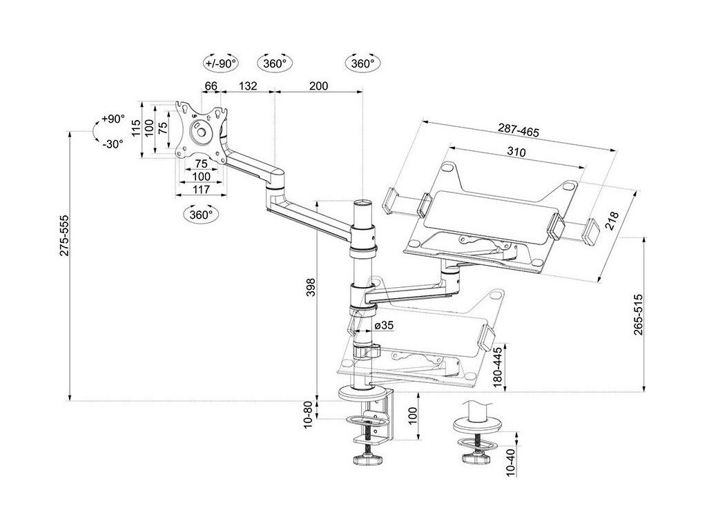 - Plně pohyblivý stolní držák pro notebook a plochou obrazovku 17–27"