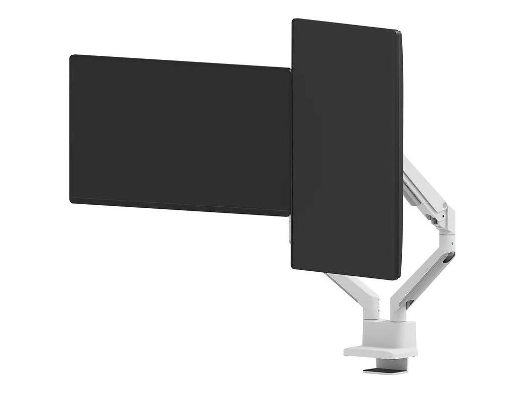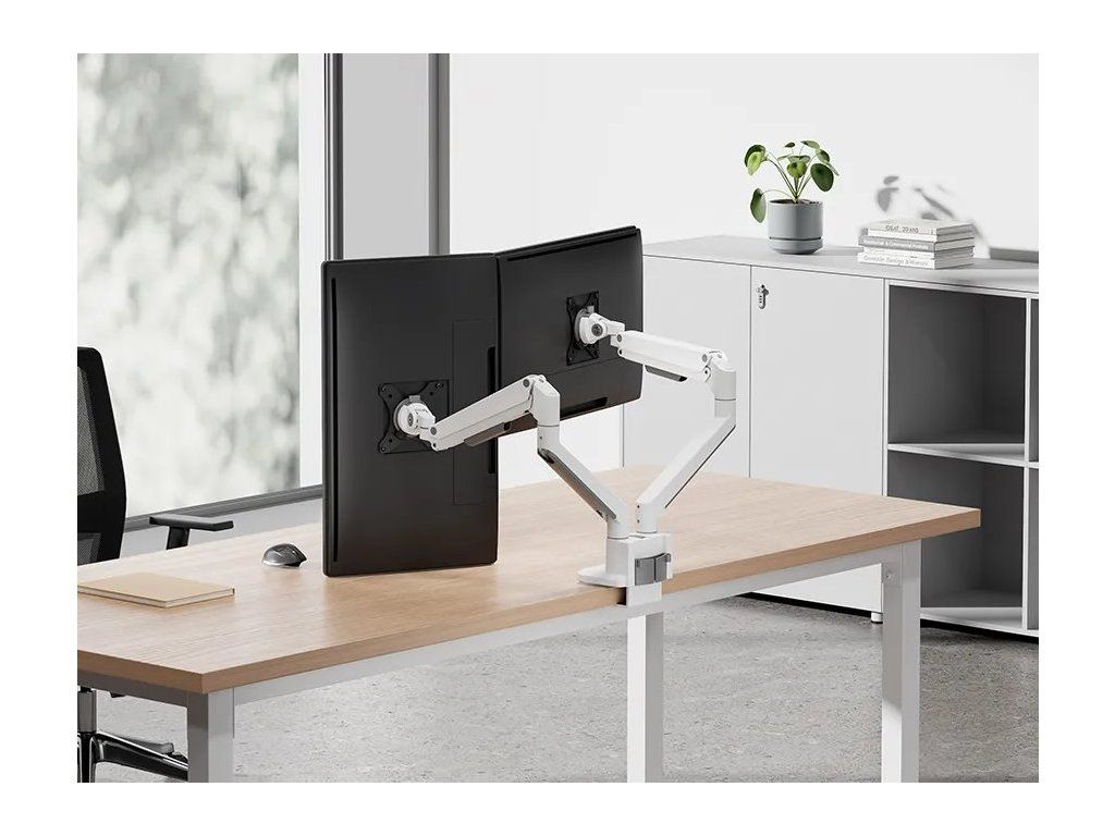 Plně pohyblivý stolní držák pro dva ploché nebo zakřivené monitory s úhlopříčkou 17" až 32" a maximální hmotností 18 kg (2× 9 kg). Všestranná technologie naklápění, otáčení a rotace umožňuje vytvořit optimální pozorovací úhel. Držák má nastavitelnou výšku 21,5–49,5 cm, hloubku 7–45,5 cm a je vhodný pro obrazovky, které odpovídají vzoru otvorů VESA 75 × 75 až 100 × 100 mm. Potěší také systém pro úhledné vedení kabelů. Balení obsahuje stolní svorku i průchodku.