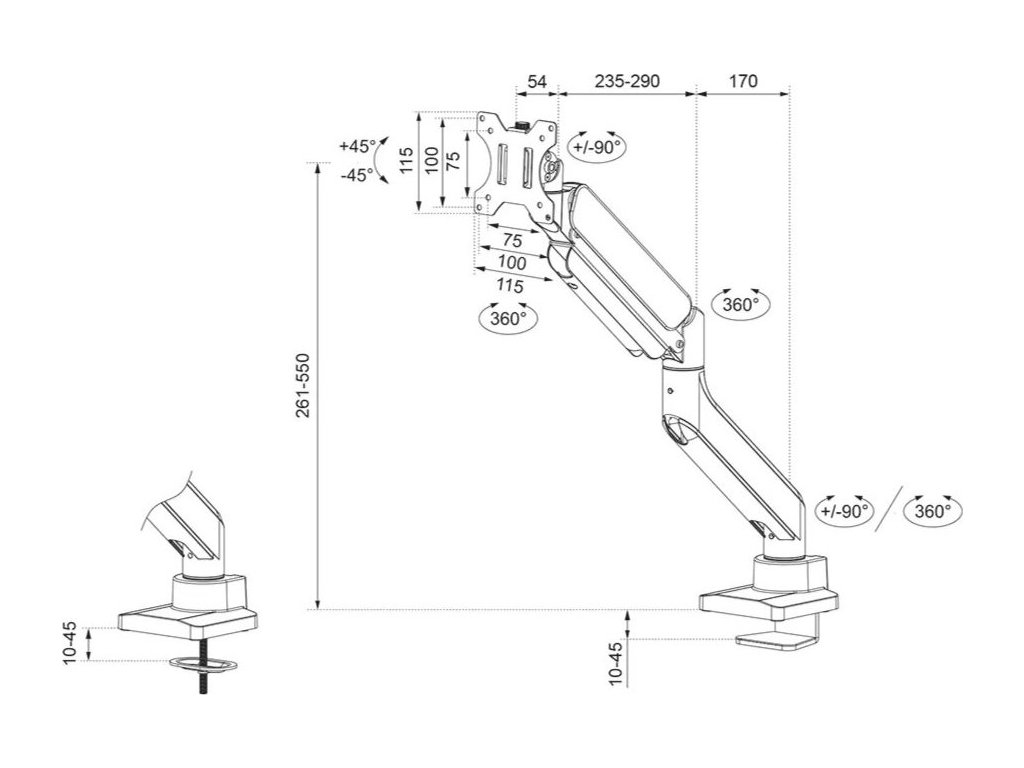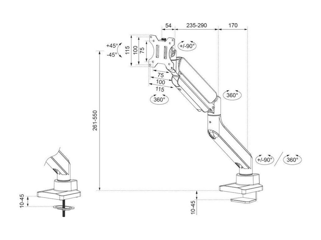 Neomounts DS70-450WH1Flexibilní stolní VESA držák pro plochý monitor o velikosti 17" až 42" a hmotnosti do 15 kg. Univerzální technologie naklápění, otáčení a rotace umožňuje optimální nastavení.