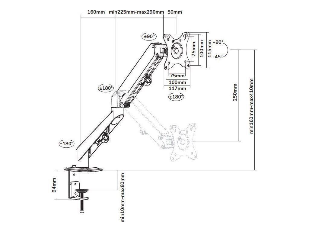 - Plně pohyblivý stolní držák pro ploché obrazovky 17–27"