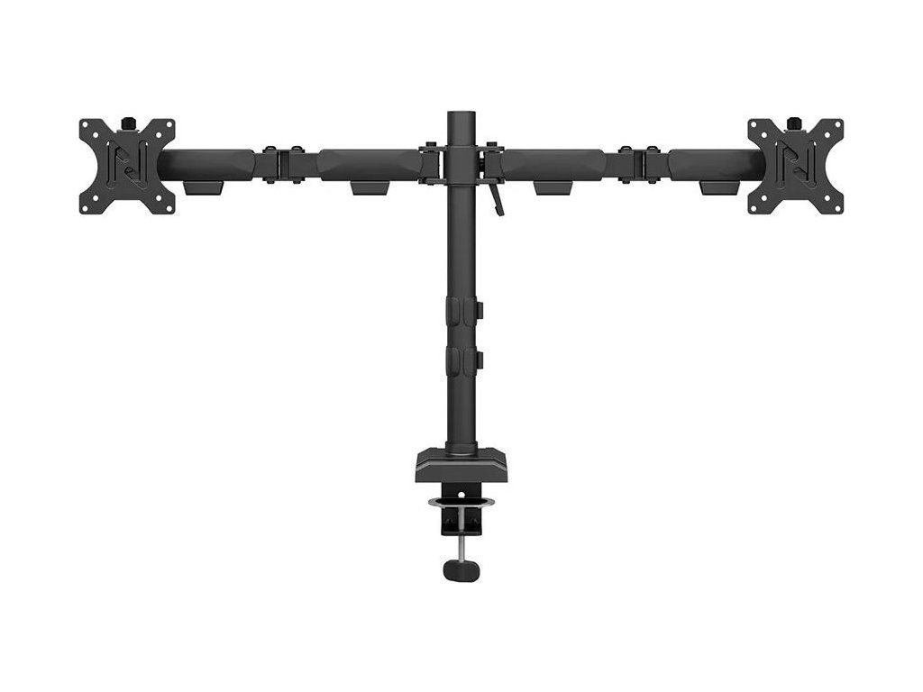 Neomounts DS60-600BL2Plně pohyblivý stolní držák pro dva ploché monitory s úhlopříčkou 10" až 32" a maximální hmotností 16 kg (2× 8 kg). Všestranná technologie naklápění, otáčení a rotace umožňuje vytvořit optimální pozorovací úhel. Držák má nastavitelnou výšku 14 až 40 cm, hloubku 9,9 až 45,9 cm a je vhodný pro obrazovky, které odpovídají vzoru otvorů VESA 75 × 75 až 100 × 100 mm. Potěší také systém pro úhledné vedení kabelů. Balení obsahuje stolní svorku i průchodku. Na základně držáku se nachází praktický držák telefonu.