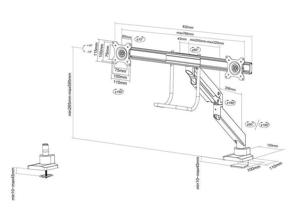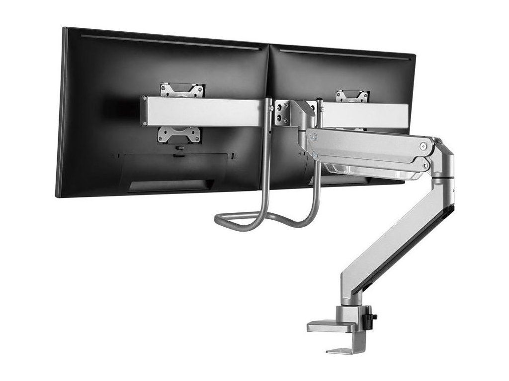- Plně pohyblivý stolní držák pro 2 ploché obrazovky od 10"–32"