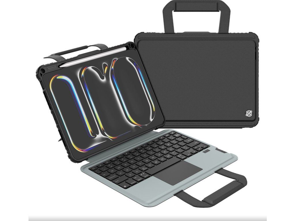 Nillkin Bumper Go Keyboard Case je víceúčelový ochranný kryt tabletu s odnímatelnou podsvícenou klávesnicí, slotem pro Apple Pencil a plynule nastavitelným úhlem tabletu.