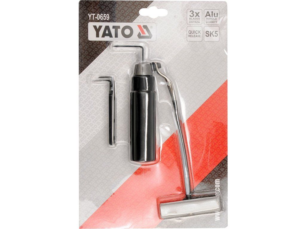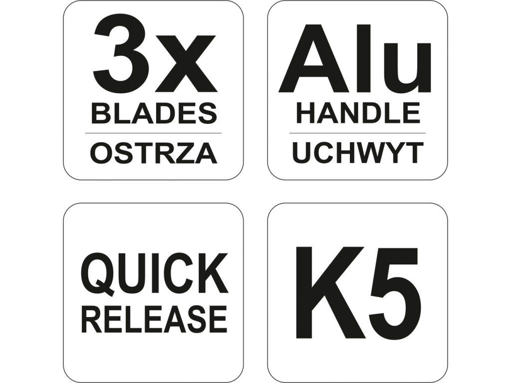 Souprava obsahuje 3 ks břitů z uhlíkové oceli K5. Tělo nástroje je zhotoveno z hliníku.