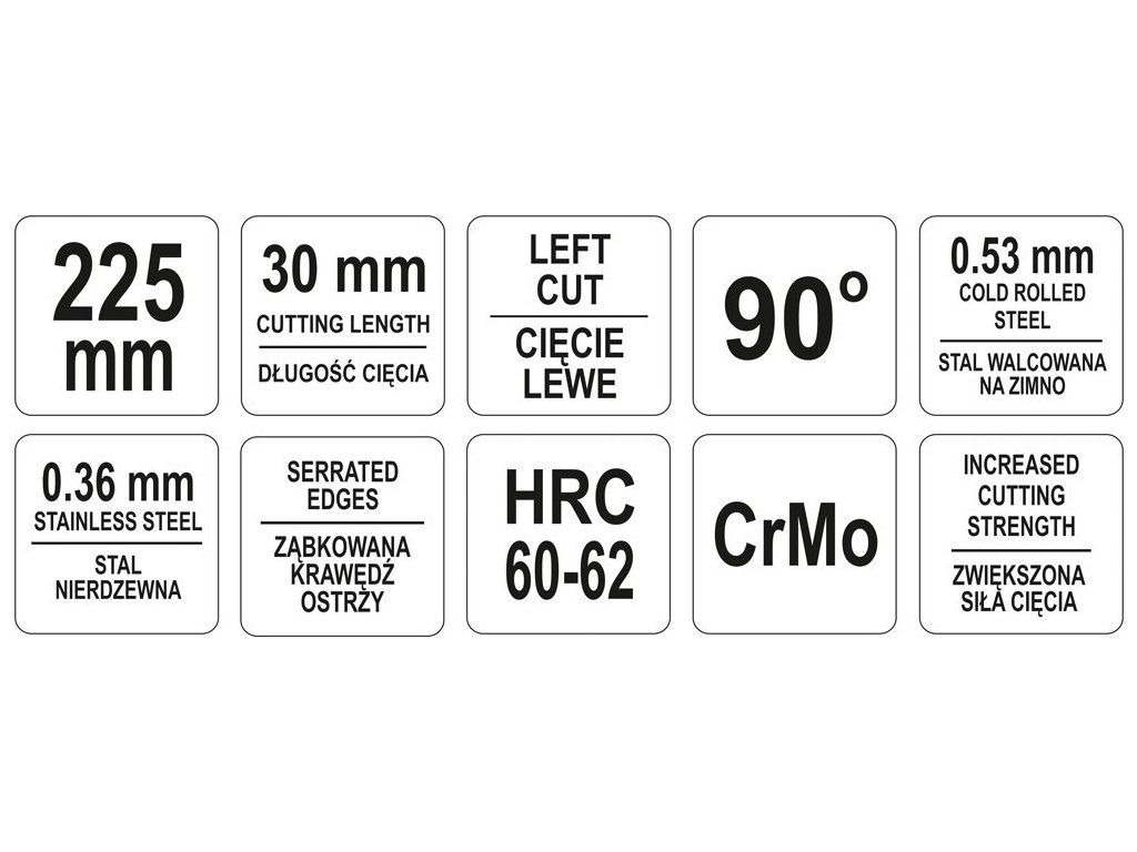 Nůžky na plech 225 mm levé 90°