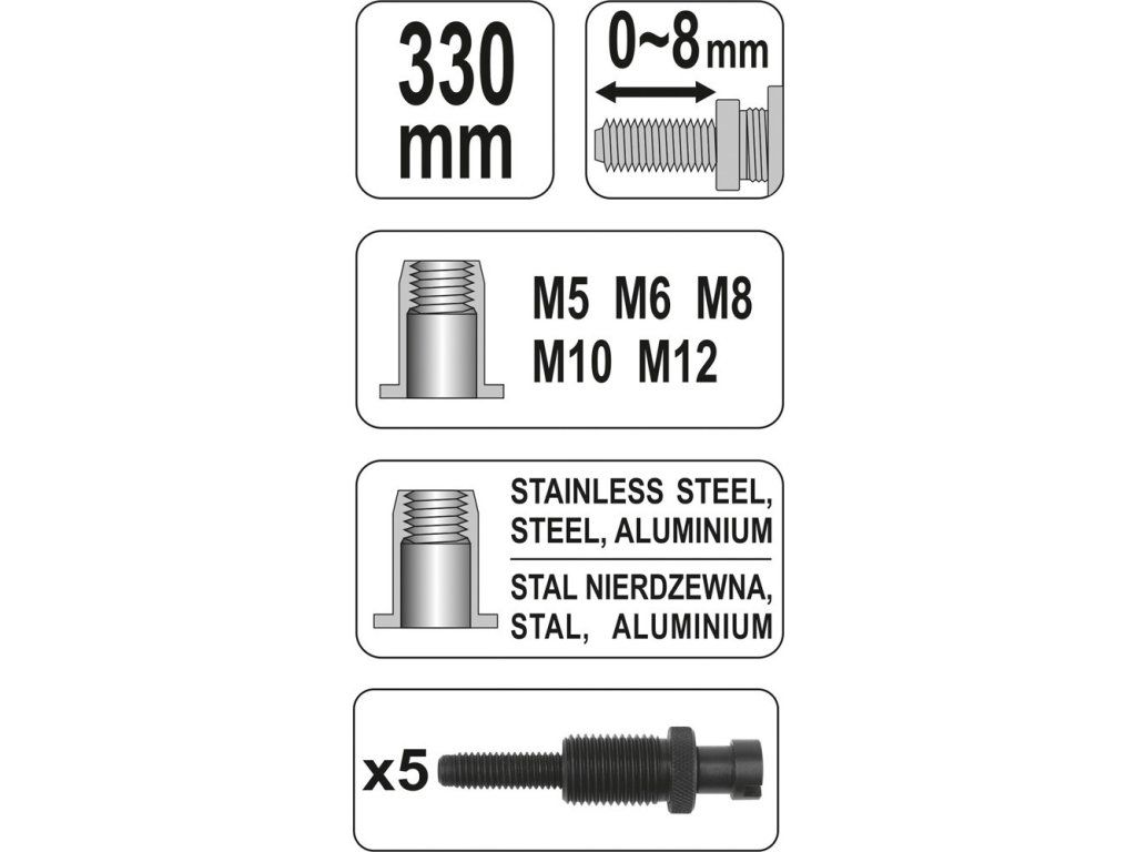 • Kleště nýtovací Pákové Yato na maticové nýty M5-M12