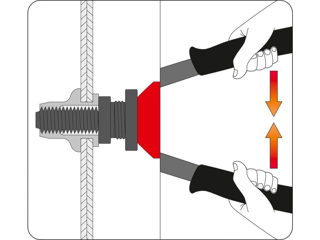 Rruční nýtovací pákové kleště Yato pro maticové nýty. Pákový mechanizmus významě snižuje námahu při práci.