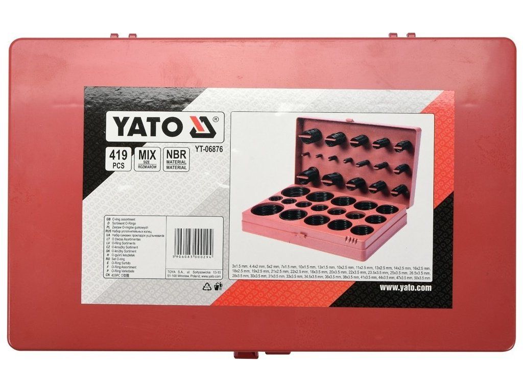 Sada 419 ks o-kroužků zhotovených z kalitní nitrilové gumy (NBR).