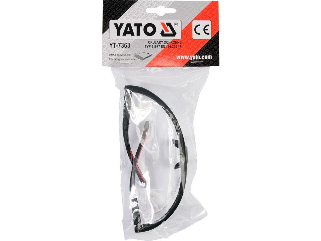 Ochranné brýle z polykarbonátu, s délkově nastavitelnými ramínky, které lze navíc pomocí otvorů na koncích opatřit např. gumičkou pro zavěšení na krk. Dosedací plochy s obličejem jsou pro pohodlnější nošení polstrované.