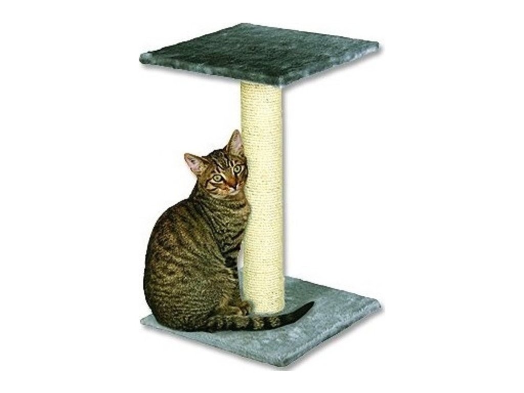 Odpočívadlo a škrábadlo pro kočky. Plyšový potah je vhodný pro relaxaci a sisalové sloupky jako škrabadlo pro obrušování drápků koček.Rozměr: 31x31x39cmBarva: šedá