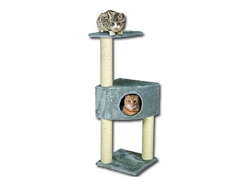 Odpočívadlo a škrábadlo pro kočky o výšce 103 cm. Plyšový potah je vhodný pro relaxaci a sisalové sloupky jako škrabadlo pro obrušování drápků koček.Velikost: 35 x 35 x 109cmBarva potahu: šedá