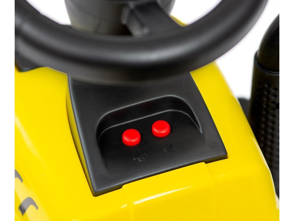Multifunkčnost pojízdného vozítka zajistí, že dítě rychle neomrzí a hrou bude rozvíjet své manuální dovednosti a motoriku. Traktor má přívěs s hráběmi a lopatou. Upevnění přívěsu zabrání automatickému odpojení. Další výhodou je interaktivní volant s klaksonem, který v kombinaci se zvukovými a světelnými prvky učiní zábavu ještě zajímavější!