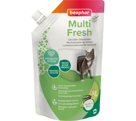 Odstraňovač zápachu Multi Fresh je unikátní produkt, který obsahuje inovativní směs k odstranění pachu kočičí moči