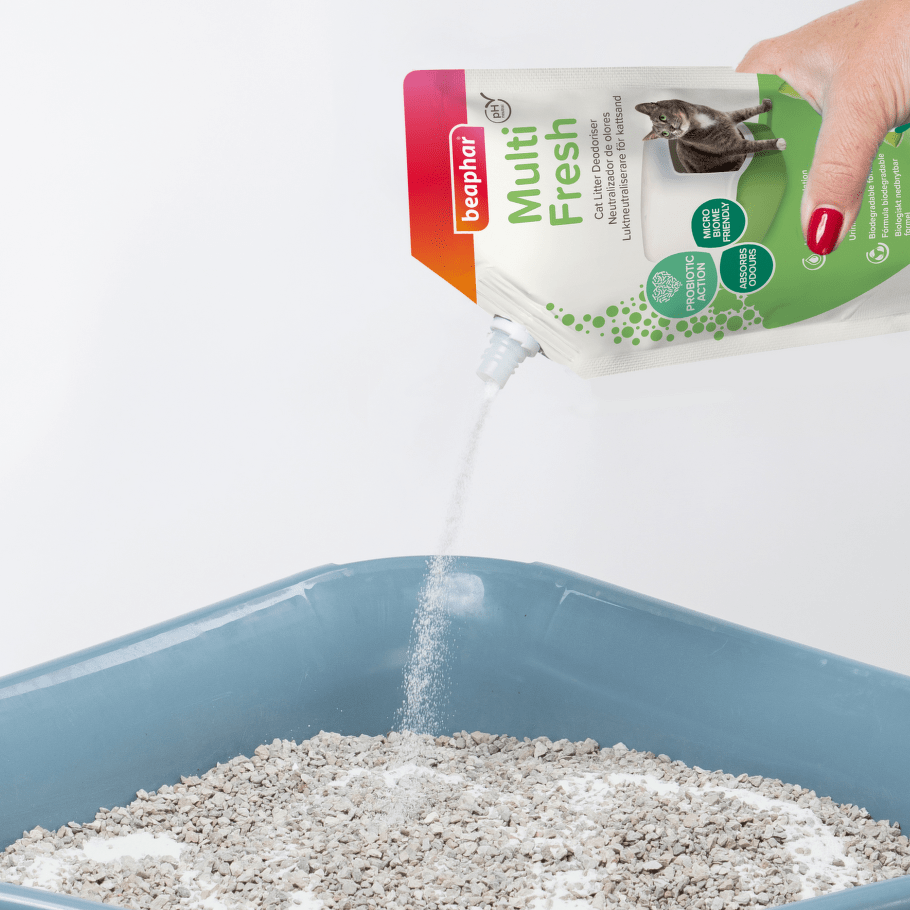 Pro dosažení nejlepších výsledků jej průběžně přisypávejte, aby se rovnoměrně promíchal s celým obsahem toalety a udržoval ji svěží po delší dobu. U domácností s jednou kočkou stačí jedna aplikace k udržení čerstvého steliva bez zápachu po dobu jednoho týdne. U domácností s více kočkami se doporučuje deodorant znovu aplikovat několikrát týdně nebo toaletu úplně vyčistit a doplnit nové stelivo.