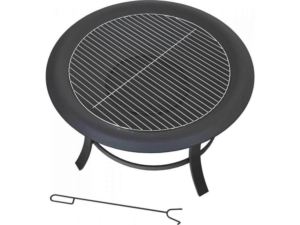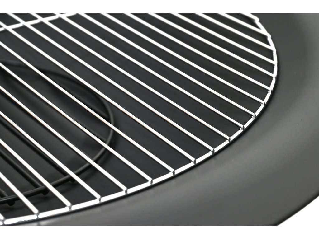 Stabilitu zajišťuje dvou prstencová konstrukce se 4x nohami z kvalitní oceli s vysokoteplotním černým nátěrem. Pro grilování je ohniště opatřeno roštem průměru 60 cm z nerezové oceli.