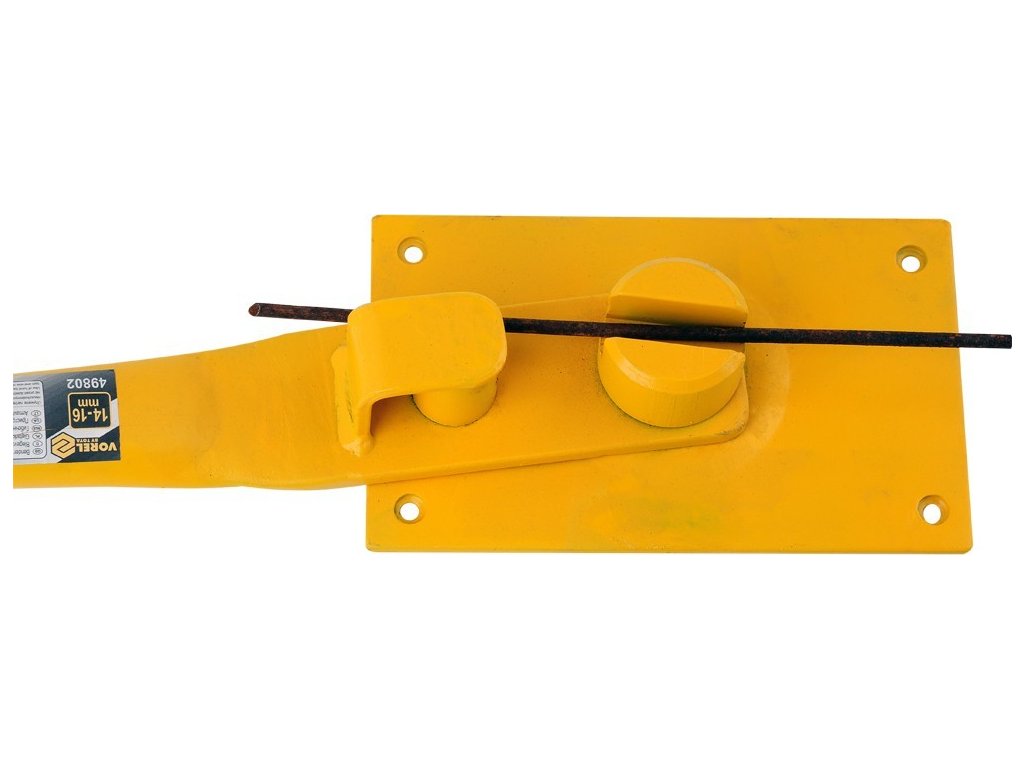 Ohýbačka je vyrobena z vysoce pevné oceli a je určena pro ohýbání třmínků a výztužných tyčí (hladkých a žebrovaných). Odolná základna a rameno o průměru 42 mm umožňují bezproblémové ohýbání tyčí 14 až 16 mm.