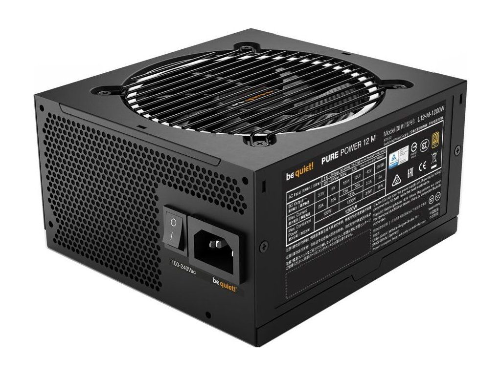 Be Quiet! PURE POWER 12 M 1 200 WNapájecí zdroj o výkonu 1 200 W je osazen 120 mm ventilátorem. Zdroj splňuje certifikaci 80PLUS Gold.